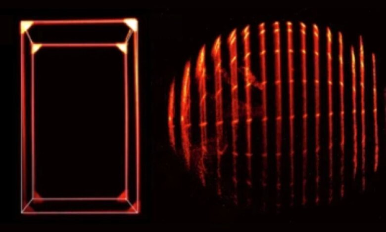 So the team used a clever substitute. “What we can do is mimic the visual effect,” Hornof said. They started with a cube of about 3 feet (1 meter) on each side. Then, they fired ultra-short laser pulses — each just 300 picoseconds long, or about a tenth of a billionth of a second — at the object. They captured the reflected light with a gated camera that opened only for that instant and produced a thin “slice” each time.