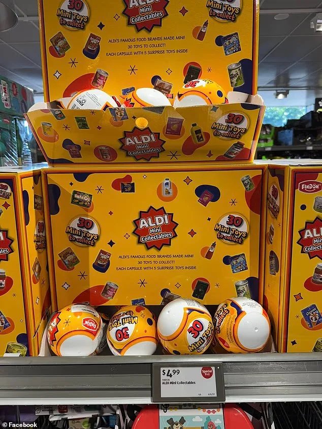 Each $5 capsule contains five surprise miniature toys with 30 to collect. The figurines replicate popular Aldi food brands, ranging from ice cream to orange juice and tomato sauce.